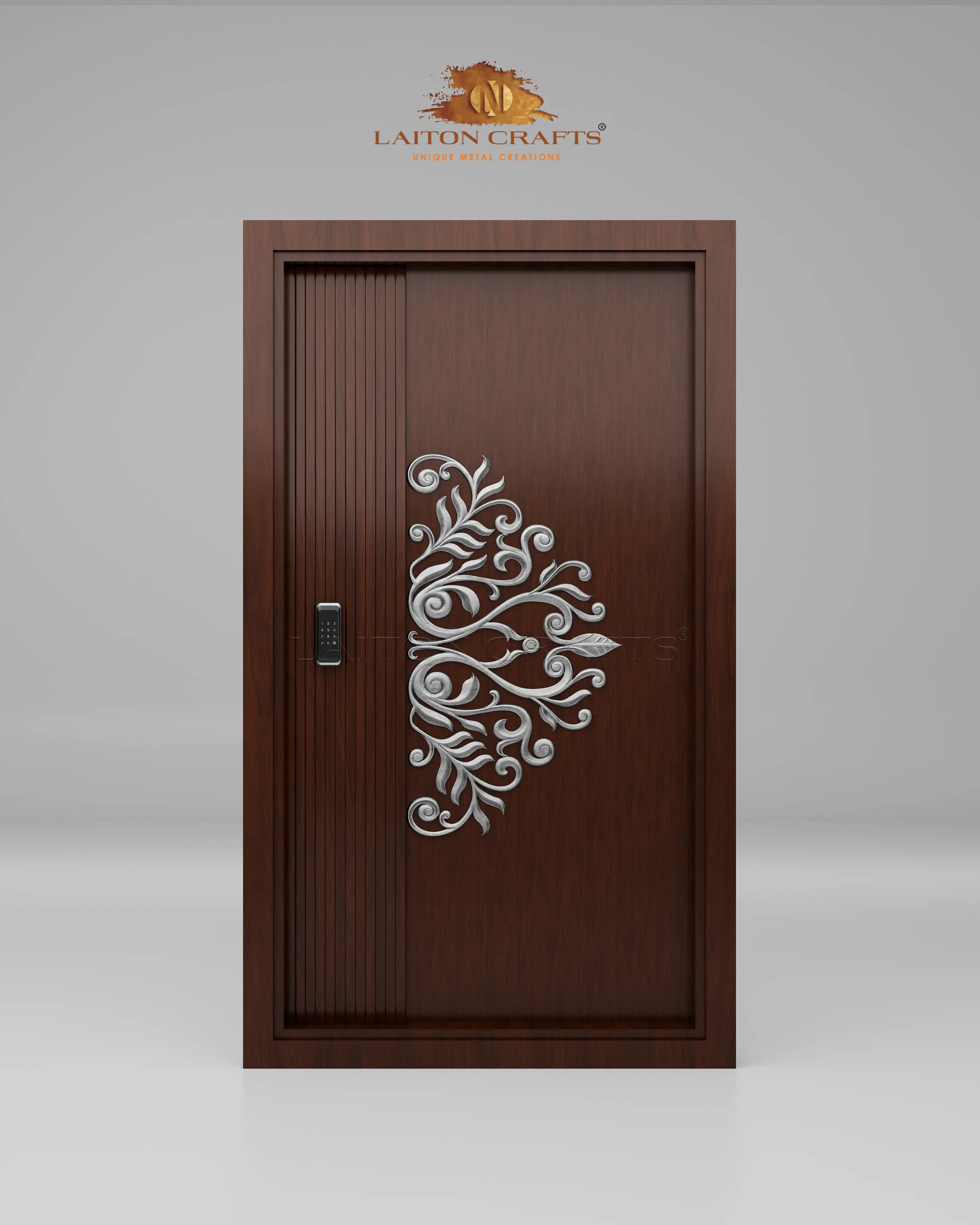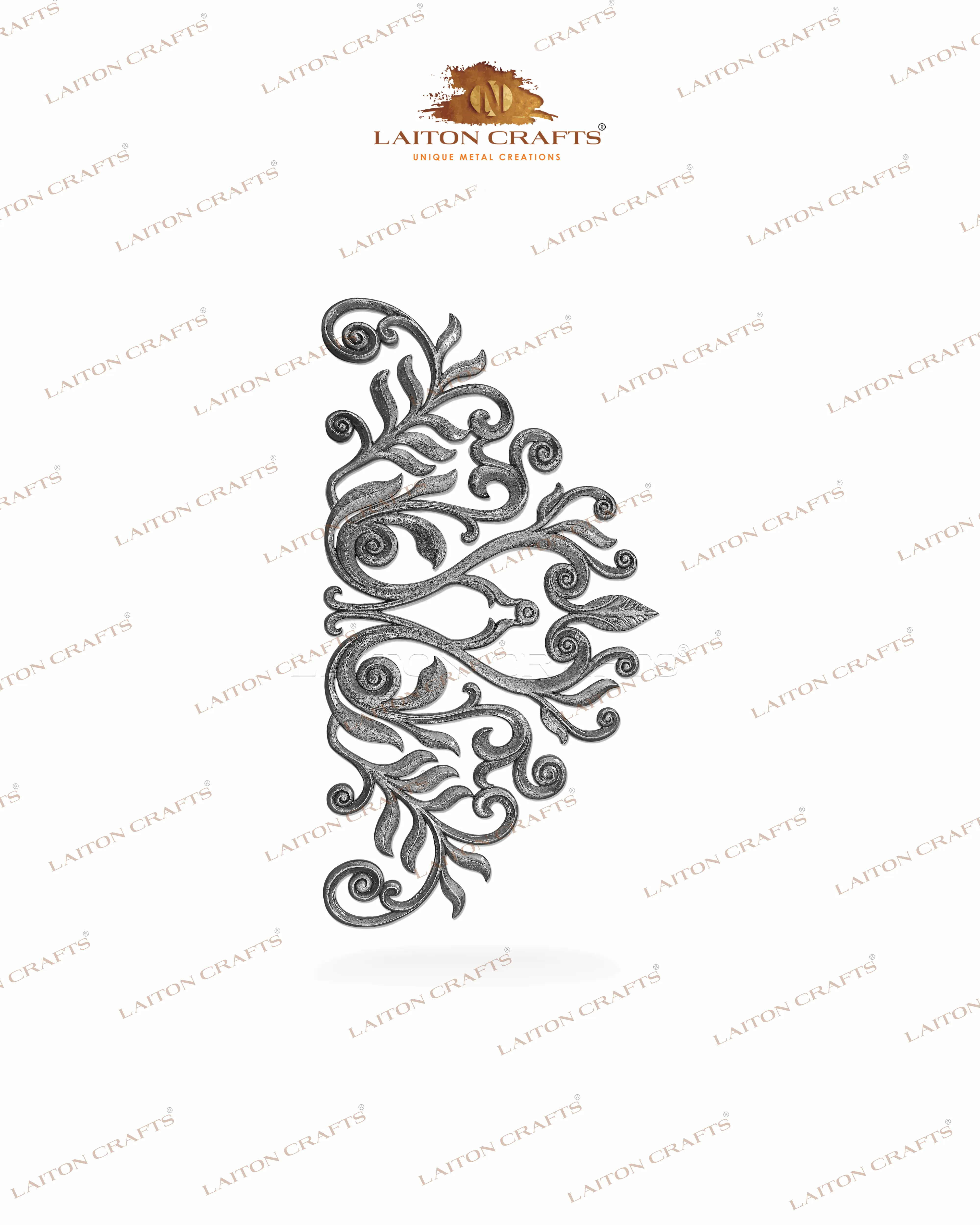 This stunning floral-themed metal embellishment from Laiton Crafts captures the essence of nature through flowing curves, leaf motifs, and intricate handcrafted detailing. The antique finish enhances the rich texture, offering an elegant contrast to your doors.